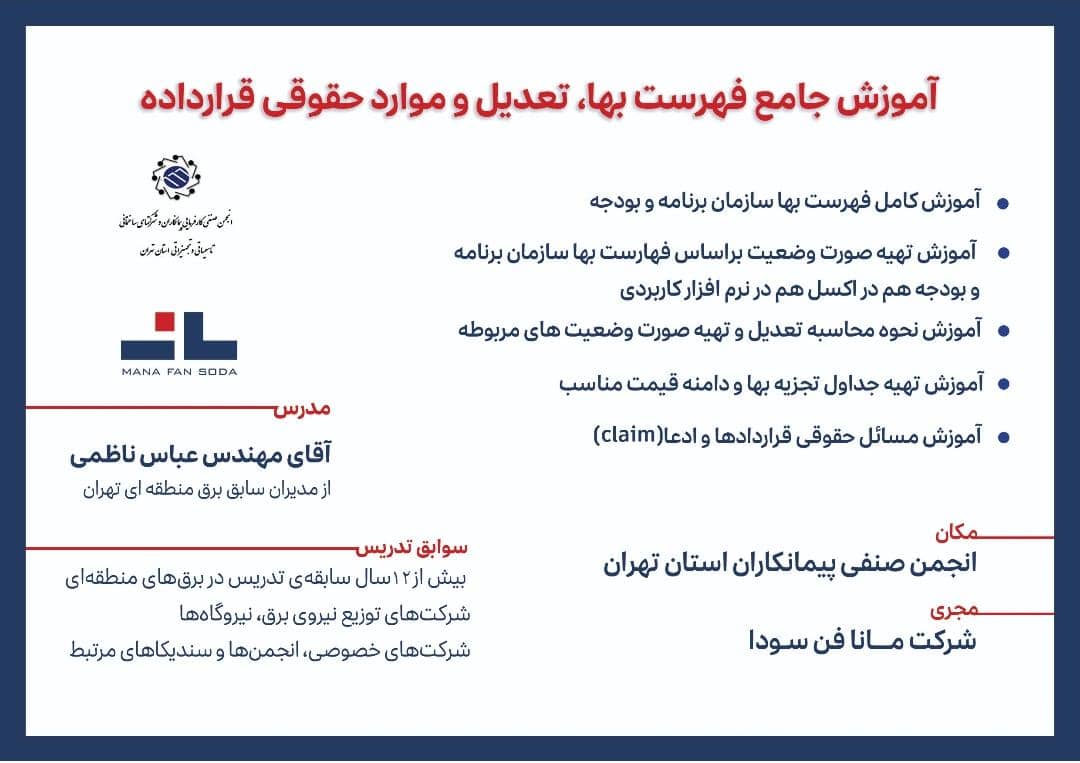 فهرست بها،تعدیل و موارد حقوقی قرارداد ها(ادعا)
